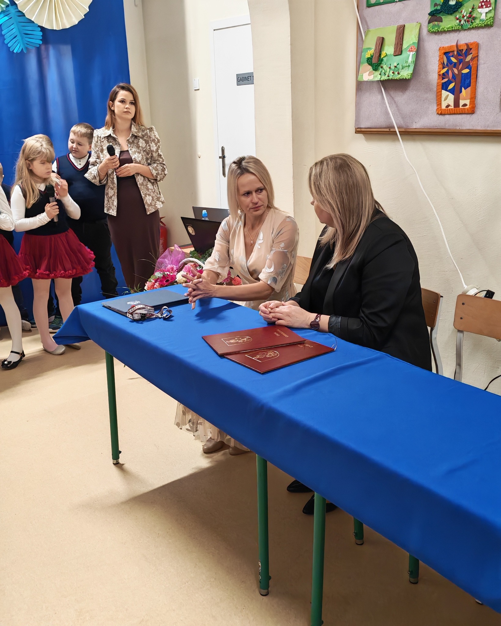 Pani Sekretarz przekazała także na ręce Pani Dyrektor piękny kosz kwiatów od Pana Wójta jako wyraz uznania i wdzięczności dla całego grona pedagogicznego .
