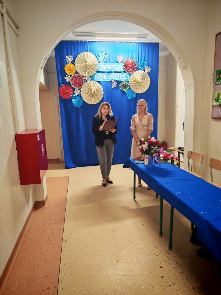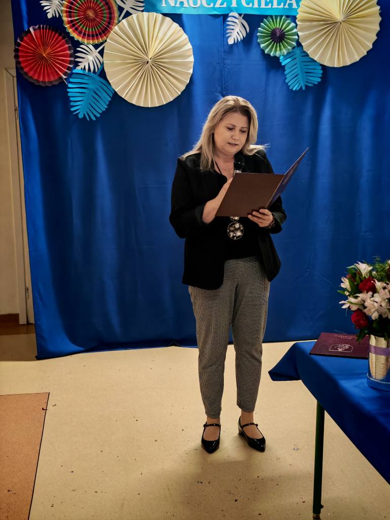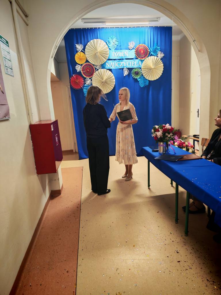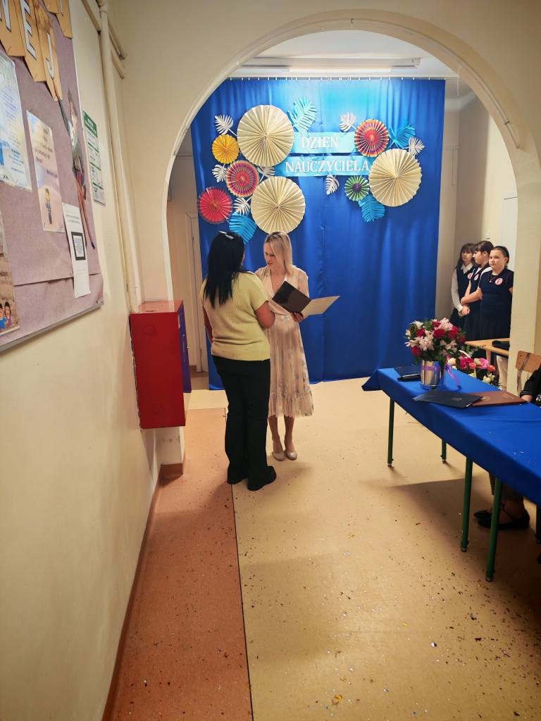 Po akademii Pani Dyrektor wręczyła Nagrody Dyrektora nauczycielom i pracownikom szkoły. Sama również otrzymała wyróżnienie, które przekazała jej Pani Izabella Kierasińska, reprezentująca Wójta Gminy Gniewoszów – Pana Marcina Szymona Gaca.