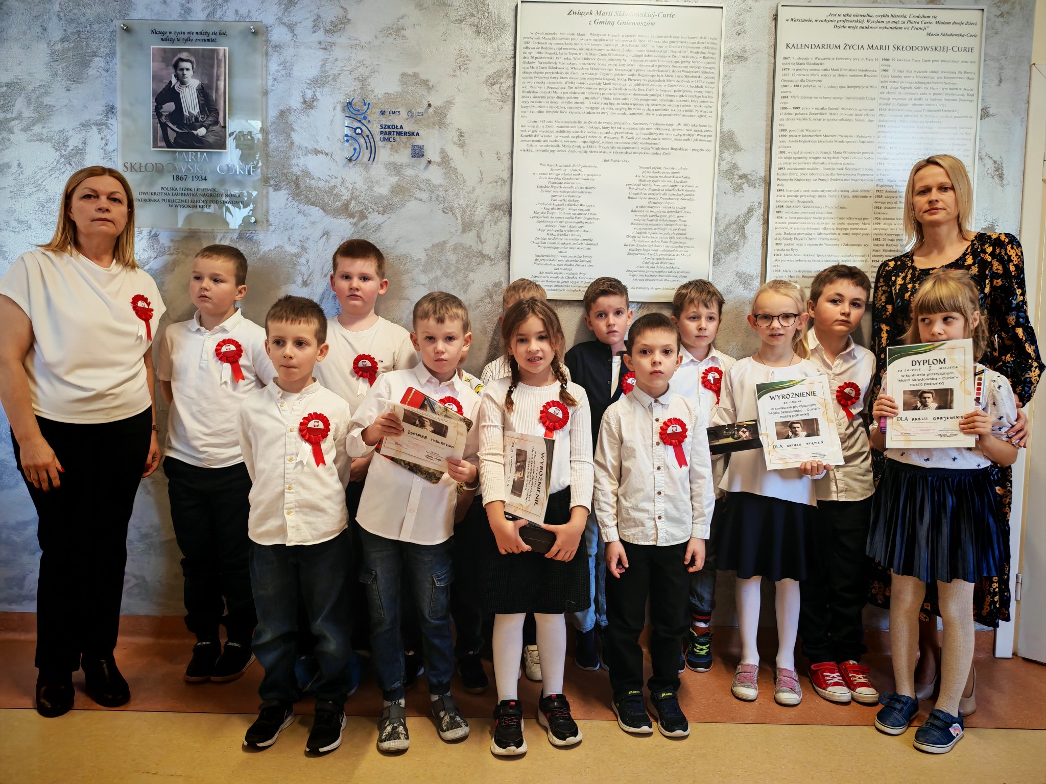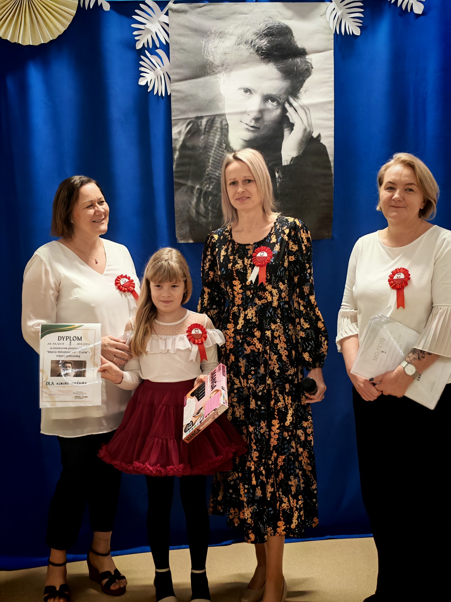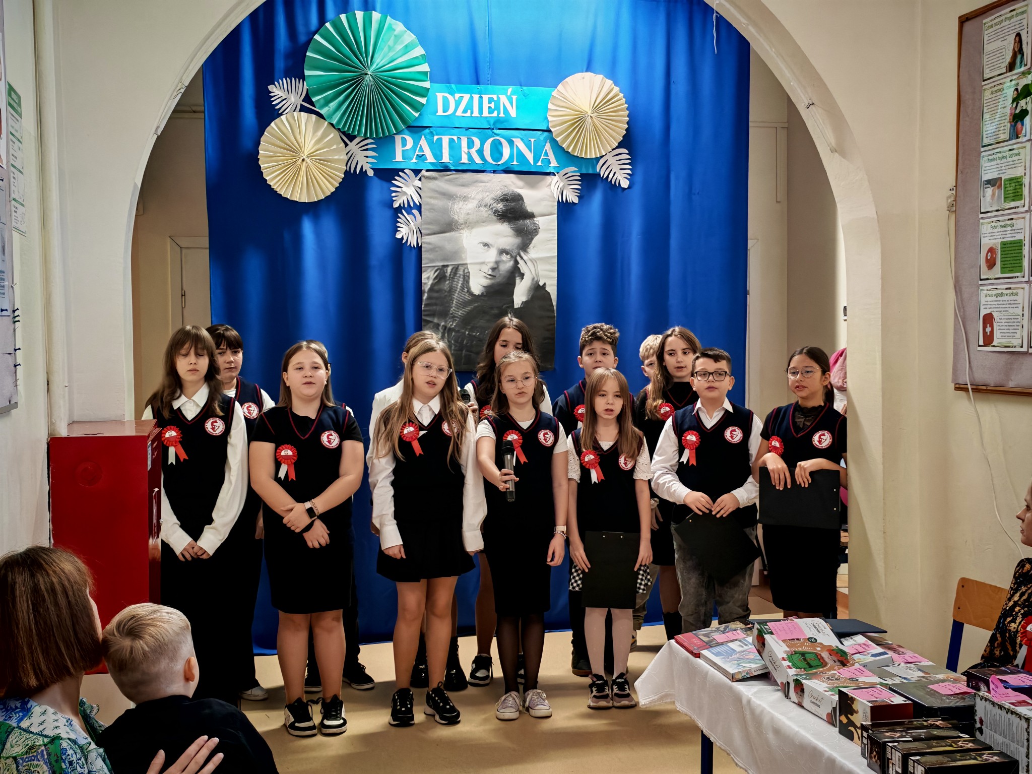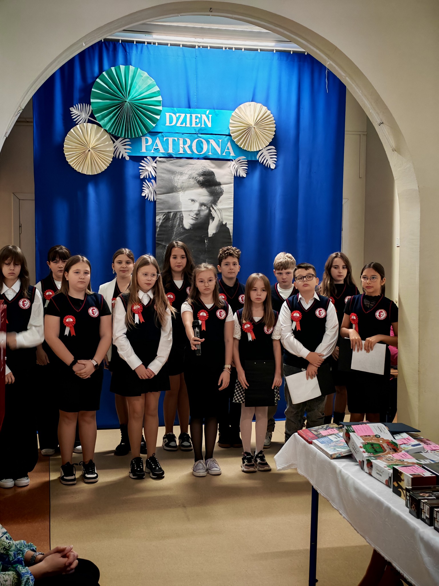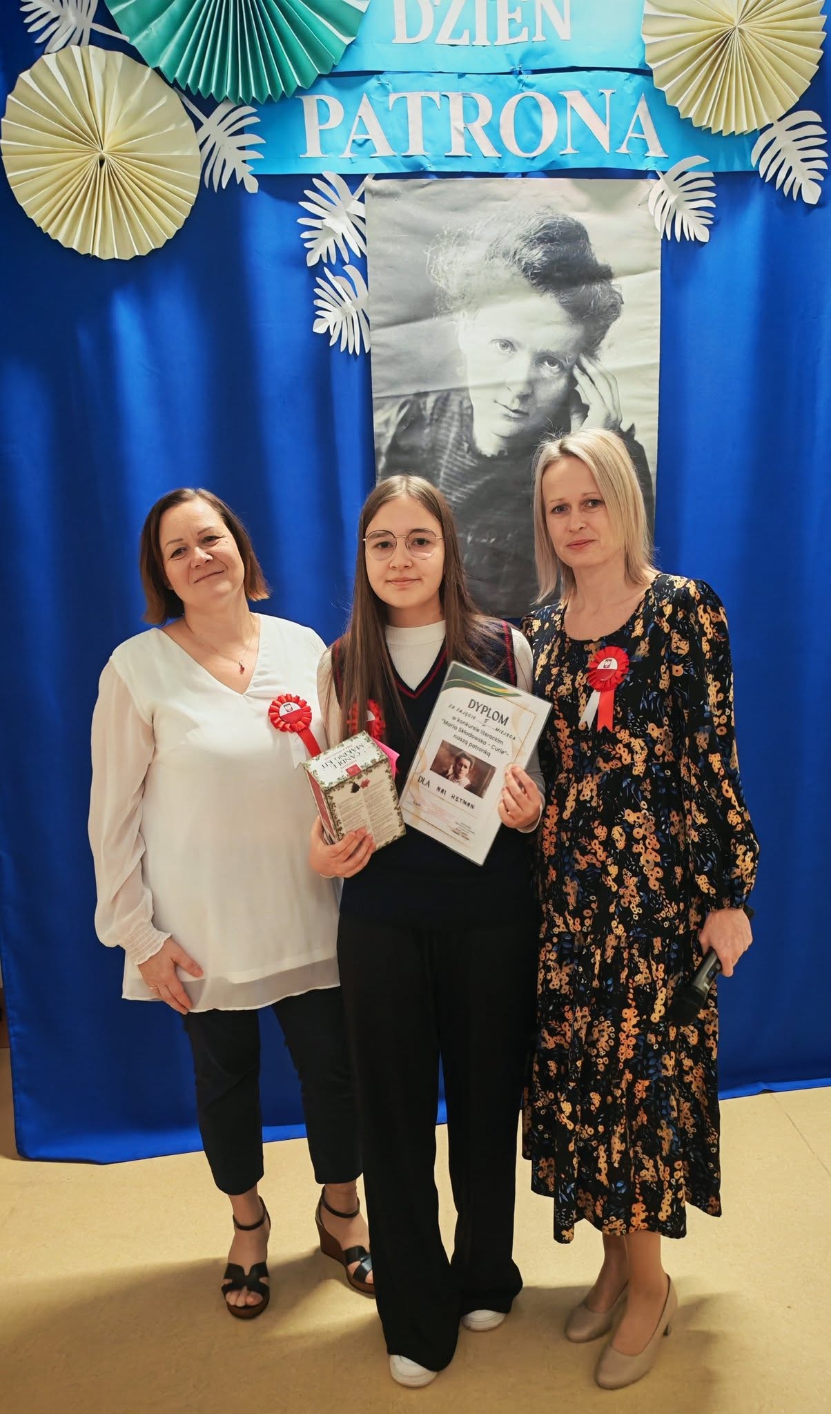 Nie mogło również zabraknąć rozstrzygnięcia konkursów poświęconych naszej Patronce. Uczniowie mieli okazję wykazać się kreatywnością i wiedzą w konkursie plastycznym i literackim, zorganizowanym przez Panią Sabinę Bożek-Mizak i Panią Martę Dymińską-Ziębę. Wszystkie prace, przemyślane i pełne inspiracji płynących z życia tej niezwykłej kobiety – naukowczyni, profesor i kobiety – świadczyły o głębokim szacunku i zrozumieniu dla jej dziedzictwa.