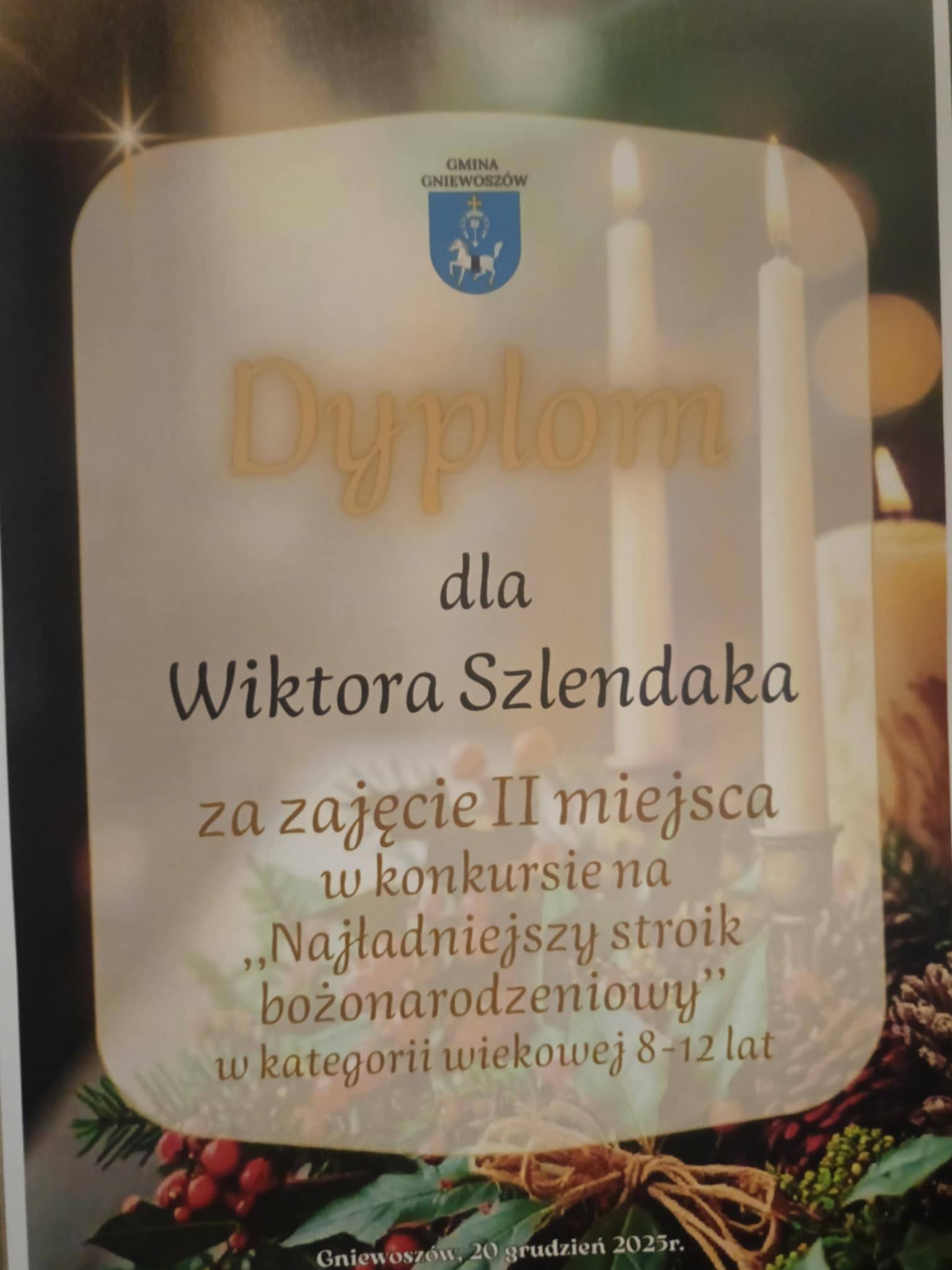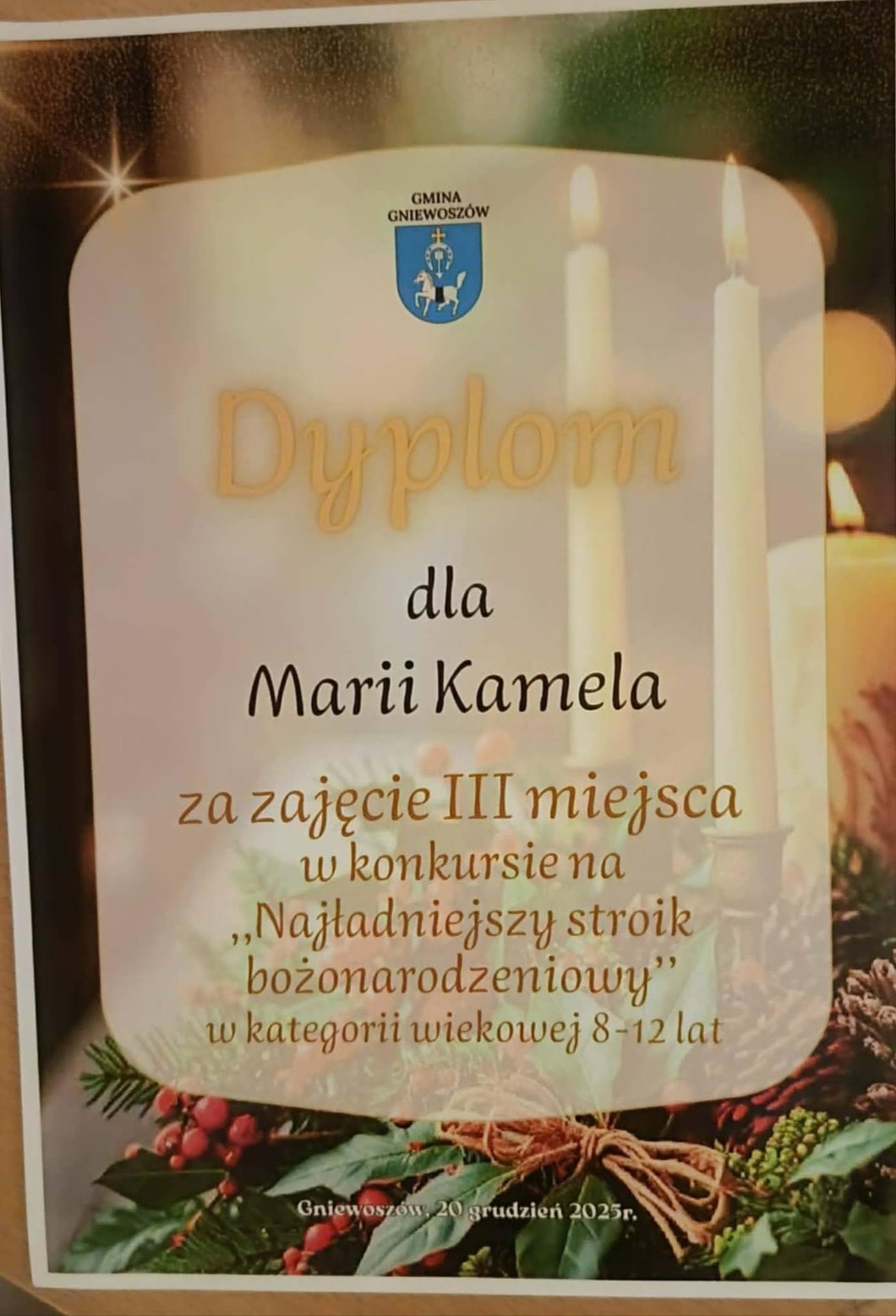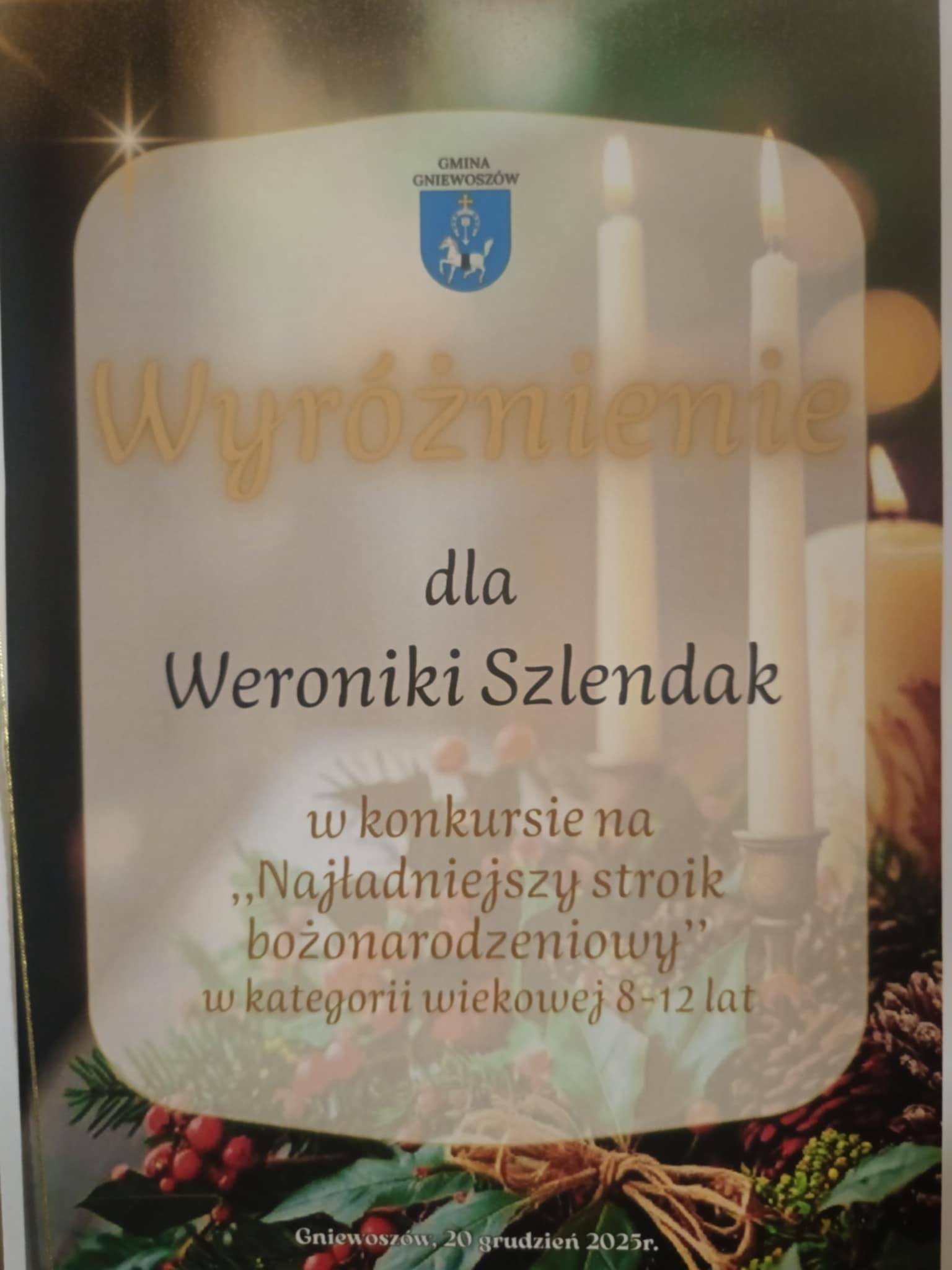 W kategorii na „Najładniejszy Stroik Bożonarodzeniowy” przyznano szczególne wyróżnienie, które otrzymała Weronika Szlendak. Jej praca zachwyciła jury dbałością o detale i prawdziwie świątecznym blaskiem.