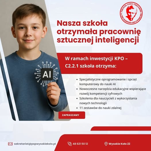Z radością informujemy, że nasza szkoła znalazła się w gronie 16 000 placówek, które zostaną wyposażone w nowoczesne laboratoria sztucznej inteligencji (AI).