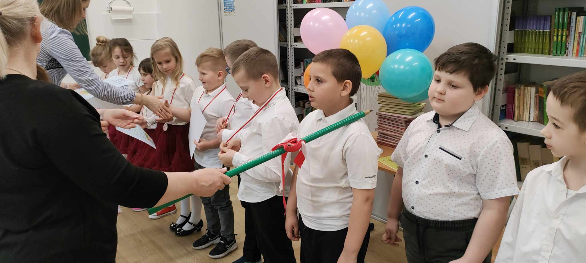 Pani Bibliotekarka opowiedziała dzieciom o tym, czym jest czytanie, dlaczego warto sięgać po książki oraz jak należy o nie dbać. Pierwszaki z wielką uwagą słuchały każdego słowa, chłonąc atmosferę tego wyjątkowego dnia.
