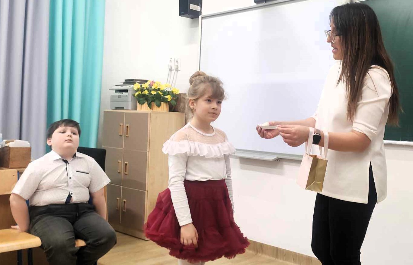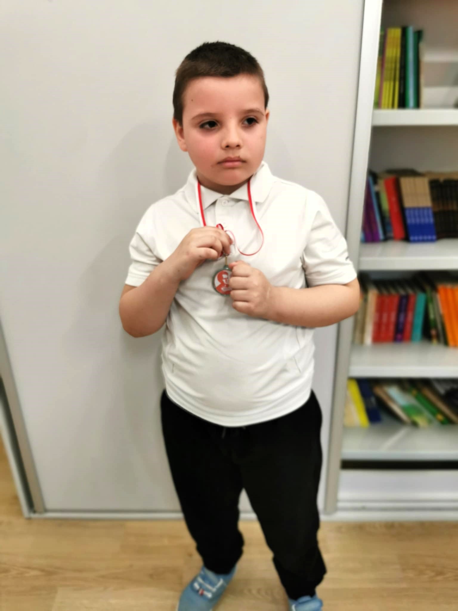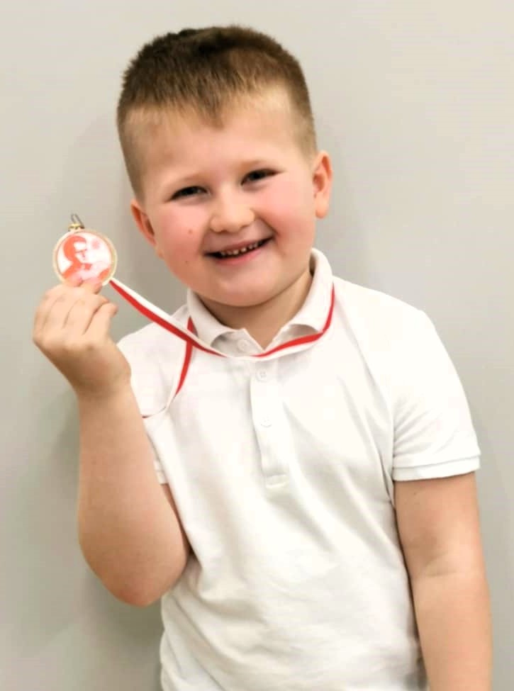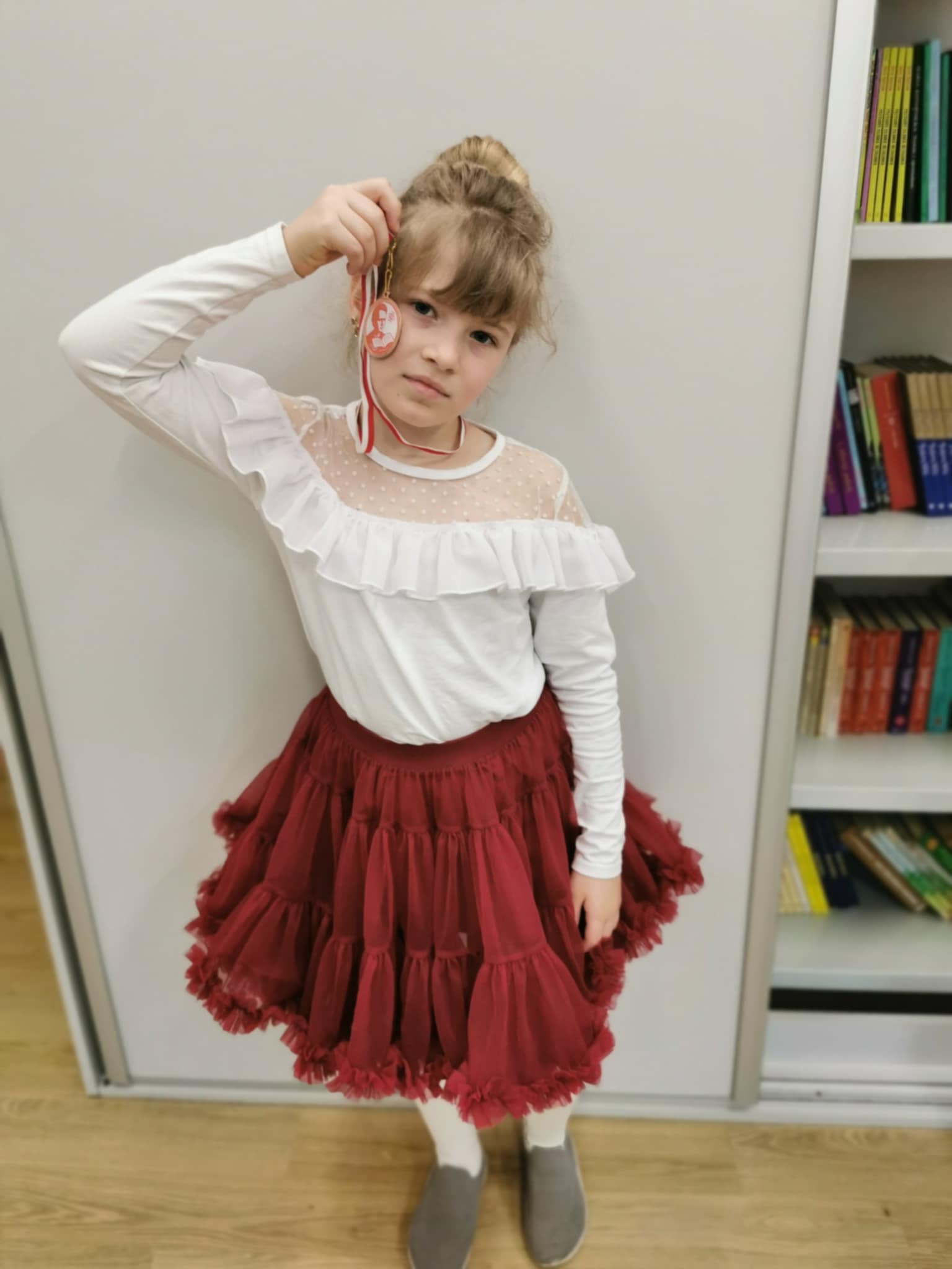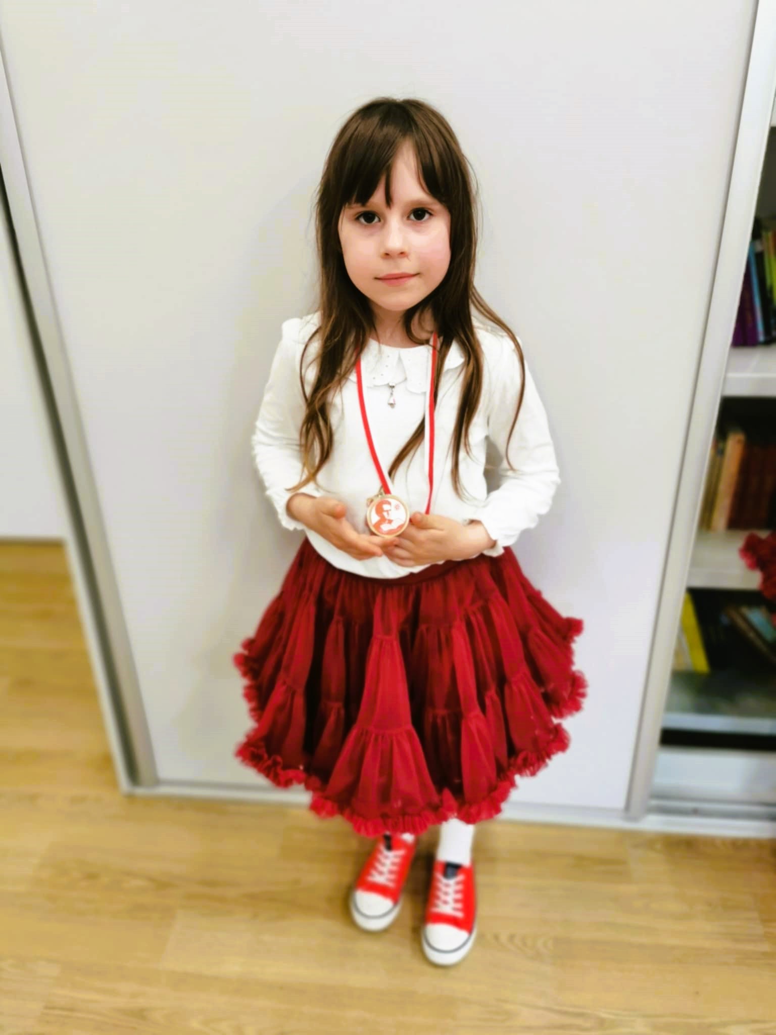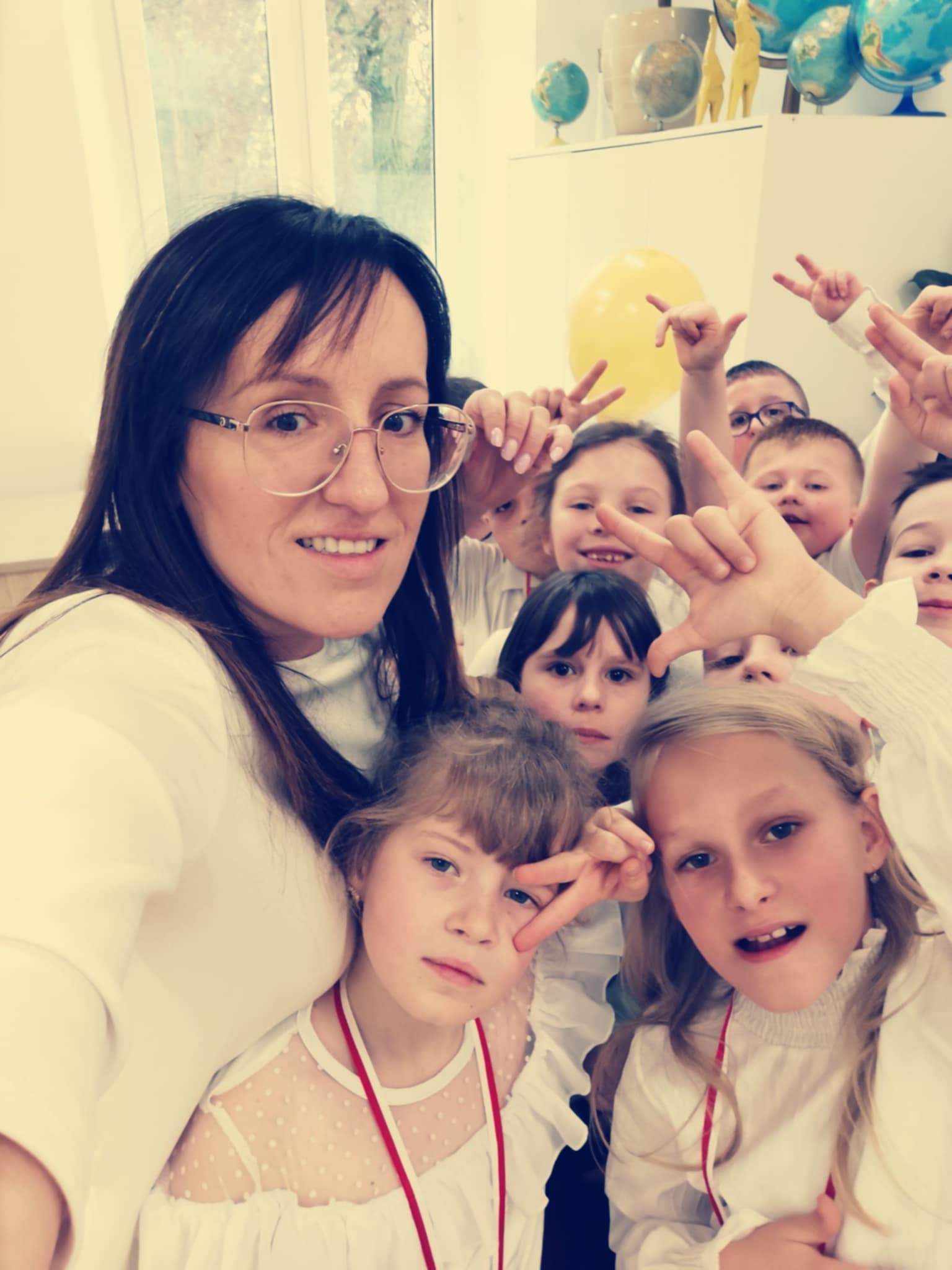 Nie zabrakło również symbolicznych upominków – każde dziecko otrzymało dyplom, książkę, słodkości, kolorowy balon oraz pamiątkowy medal z wizerunkiem naszej Patronki – Marii Skłodowskiej-Curie.