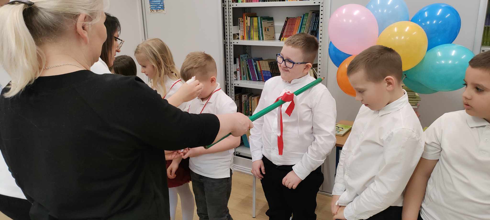 Dnia 11 kwietnia 2025 r. uczniowie klasy I naszej szkoły przeżyli niezwykle ważny i uroczysty moment – zostali oficjalnie pasowani na czytelników biblioteki szkolnej. To wydarzenie, pełne wzruszeń i radości, symbolicznie otwiera przed dziećmi świat książek, wyobraźni i wiedzy.