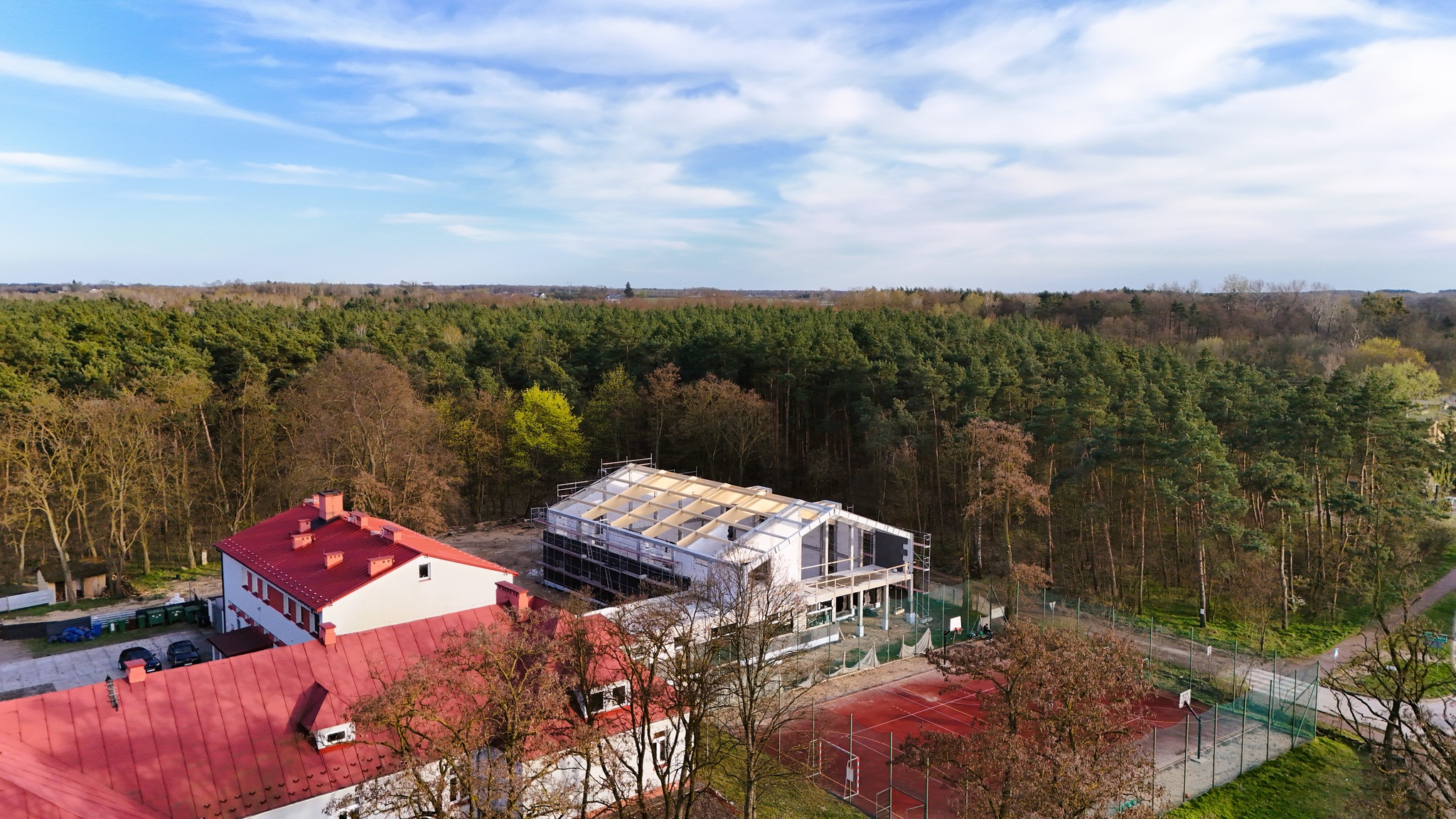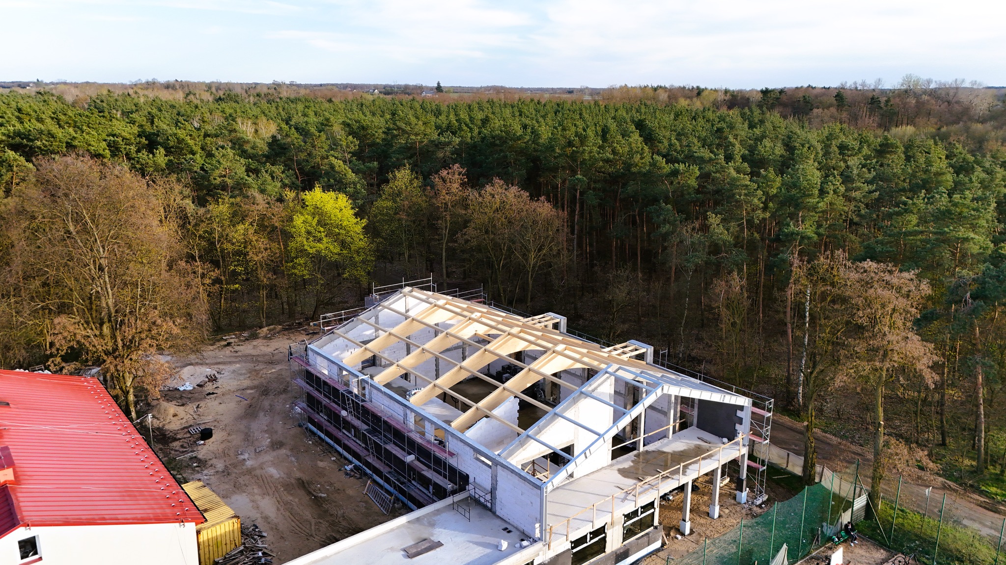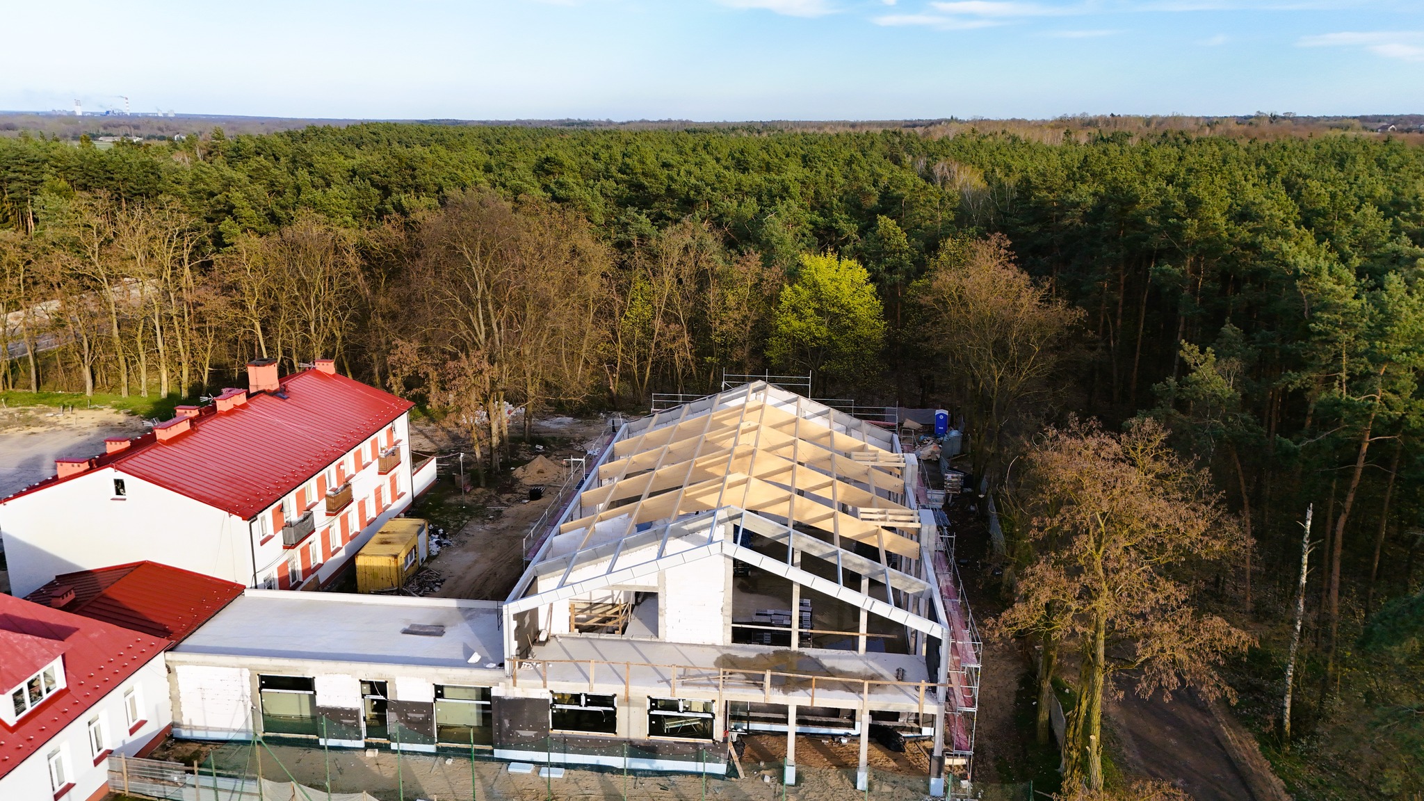 Z radością dzielimy się kolejnym ważnym etapem prac – zakończono montaż drewnianej konstrukcji dachu!