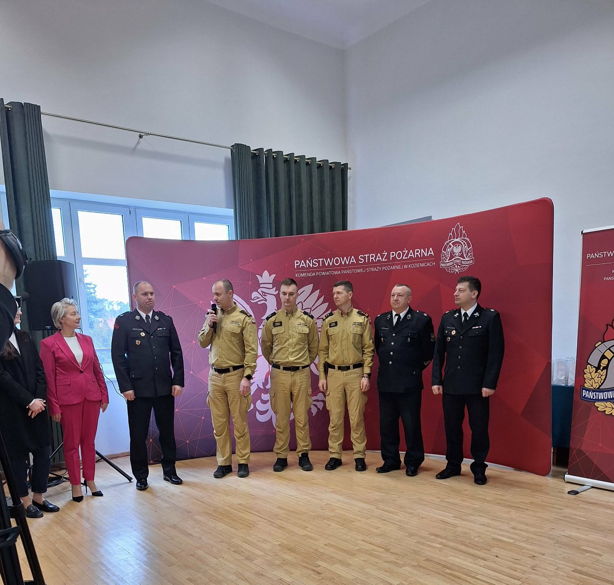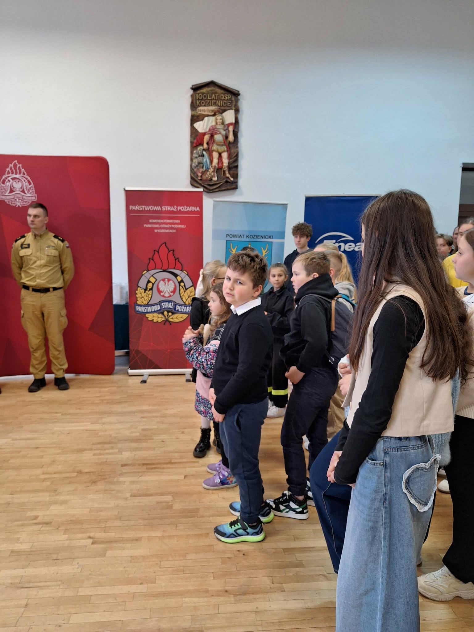 1 kwietnia 2026 r. w Komendzie Powiatowej Straży Pożarnej w Kozienicach odbyły się powiatowe eliminacje turnieju wiedzy pożarniczej. Naszą szkołę dumnie reprezentowali uczniowie klasy pierwszej: Natalia Stępień, Martyna Wilk, Krzysztof Kozioł, Mikołaj Krawczyk oraz Maja Kopania z klasy siódmej i Aneta Kowalczyk z klasy ósmej. Miłą i atrakcyjną niespodzianką był spacer z przewodnikiem po budynku strażnicy. Dzieci dowiedziały się wielu informacji dotyczących pracy strażaka, wysłuchały i obejrzały, którymi pojazdami strażacy gaszą pożary, a jakimi wyjeżdżają do wypadków. Miały możliwość przymierzyć hełmy oraz wejść do wozu strażackiego. Na zakończenie wszyscy uczestnicy konkursu otrzymali upominki z rąk starosty kozienickiego Pana Krzysztofa Wolskiego. Dziękujemy wszystkim uczestnikom konkursu za udział oraz nauczycielom za przygotowanie.