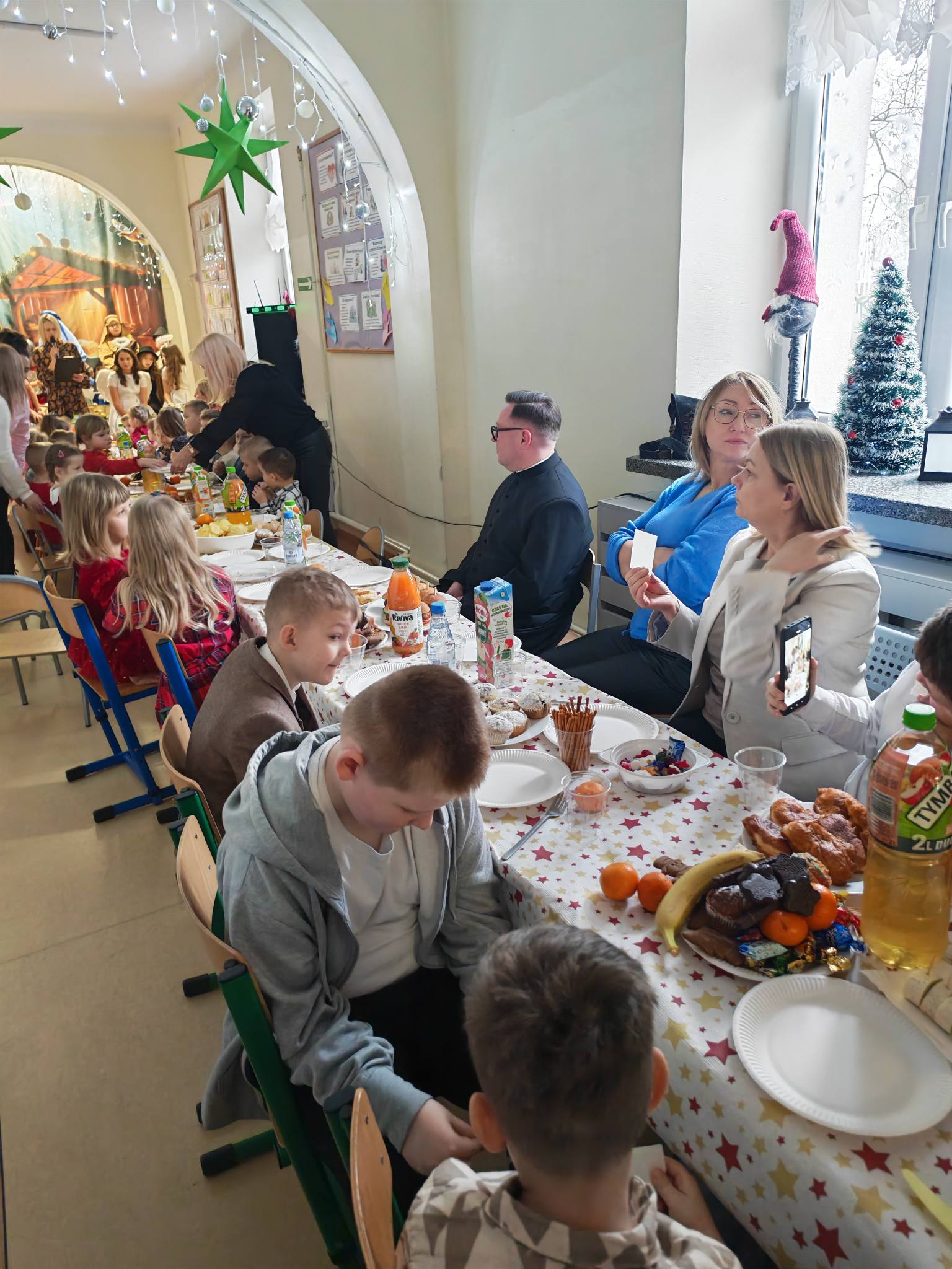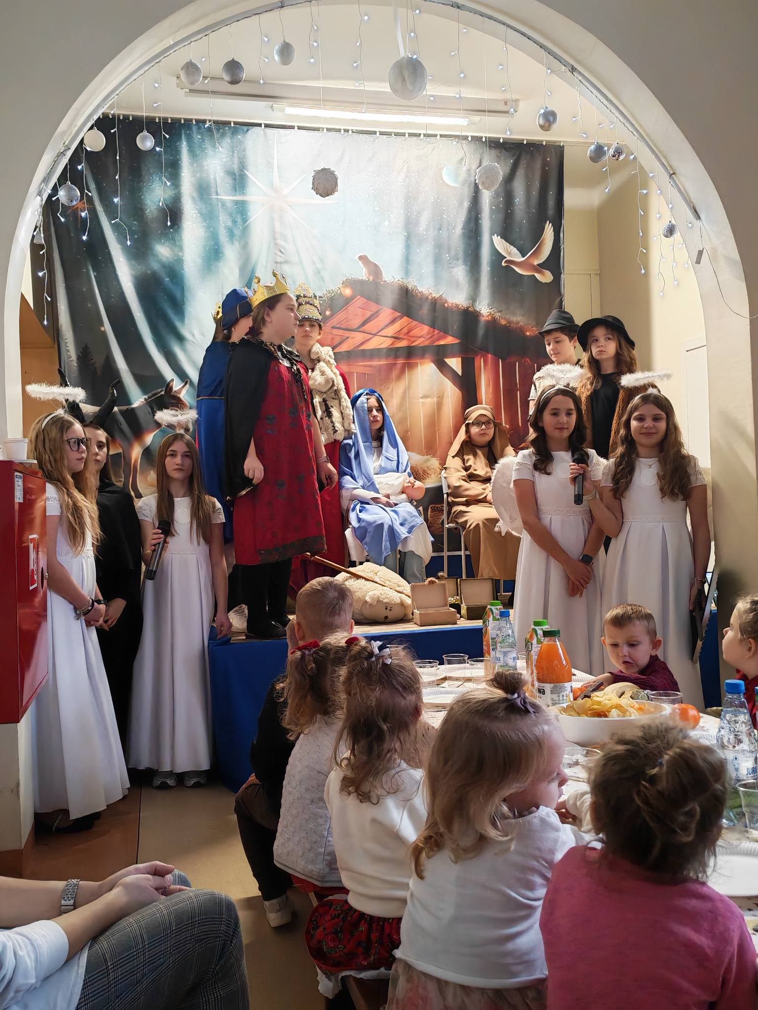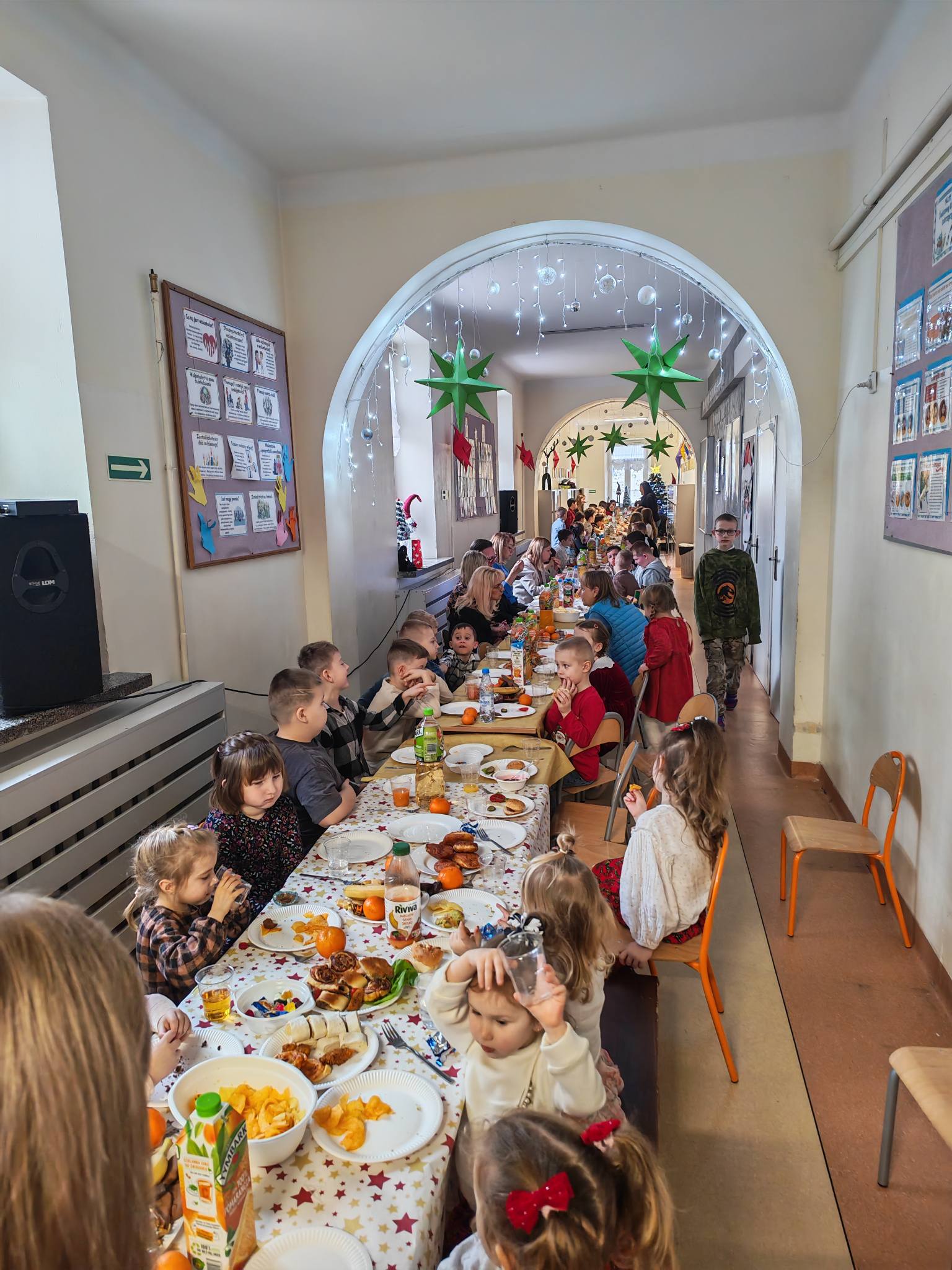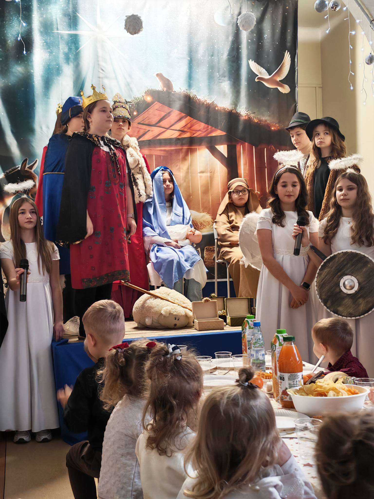 Po przedstawieniu cała społeczność szkolna spotkała się na wspólnej wigilii na szkolnym korytarzu. Było śpiewanie kolęd, serdeczne rozmowy i chwile pełne radości oraz wzajemnej życzliwości.