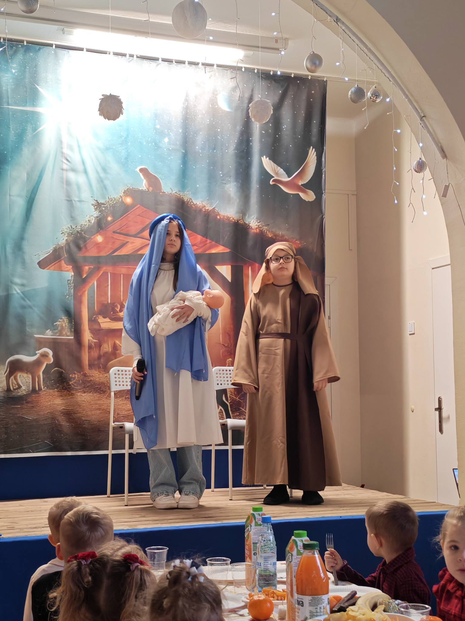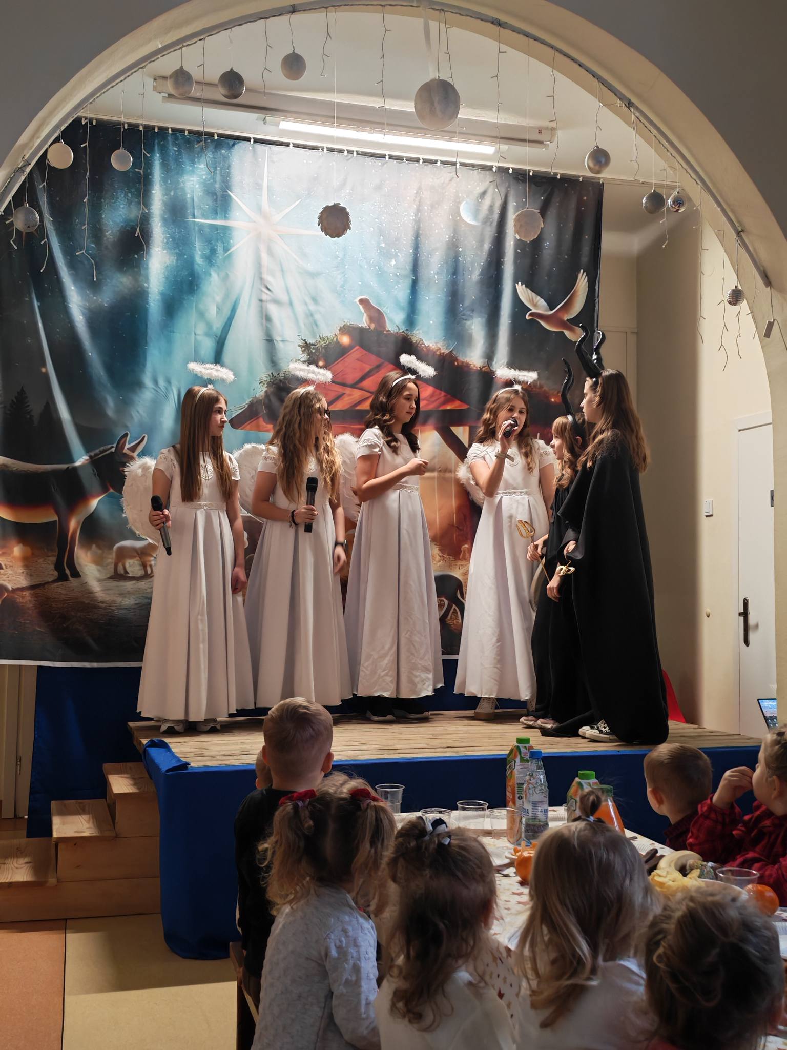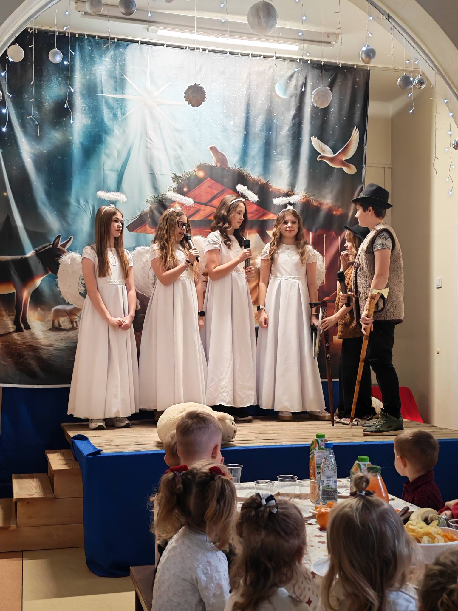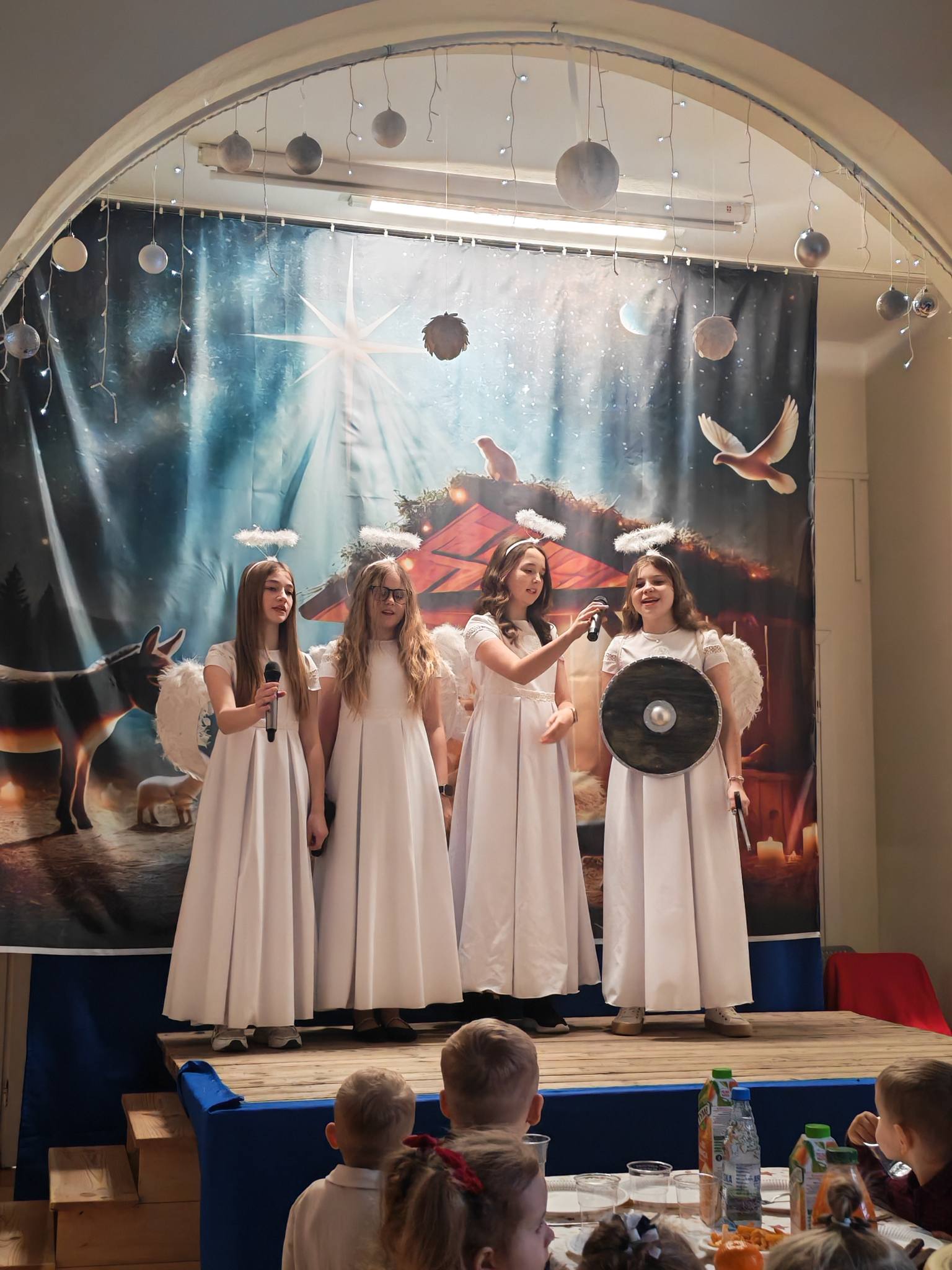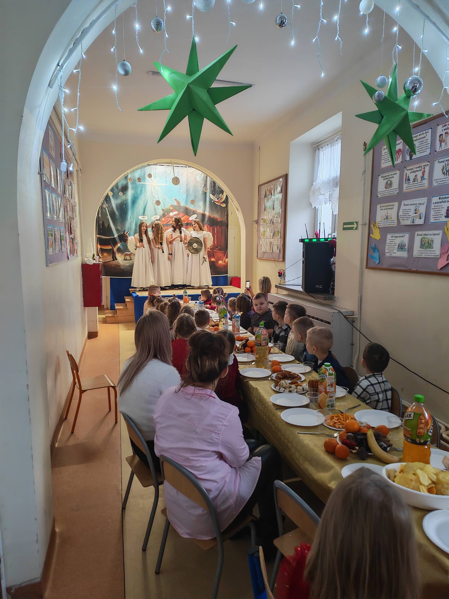 Po przedstawieniu cała społeczność szkolna spotkała się na wspólnej wigilii na szkolnym korytarzu. Było śpiewanie kolęd, serdeczne rozmowy i chwile pełne radości oraz wzajemnej życzliwości.