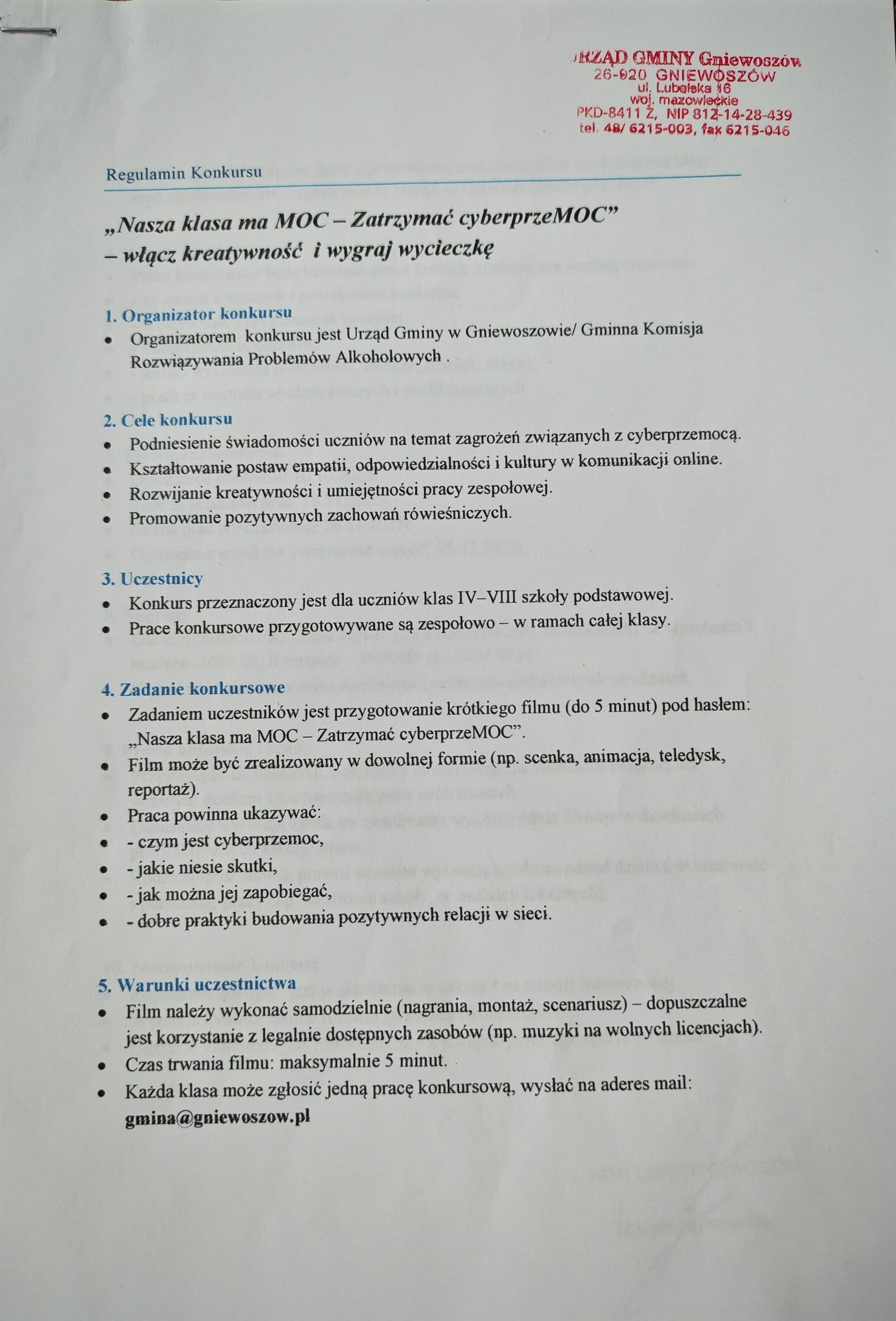 Regulamin konkursu "Nasza Klasa ma Moc-Zatrzymać cyberPrzemoc"