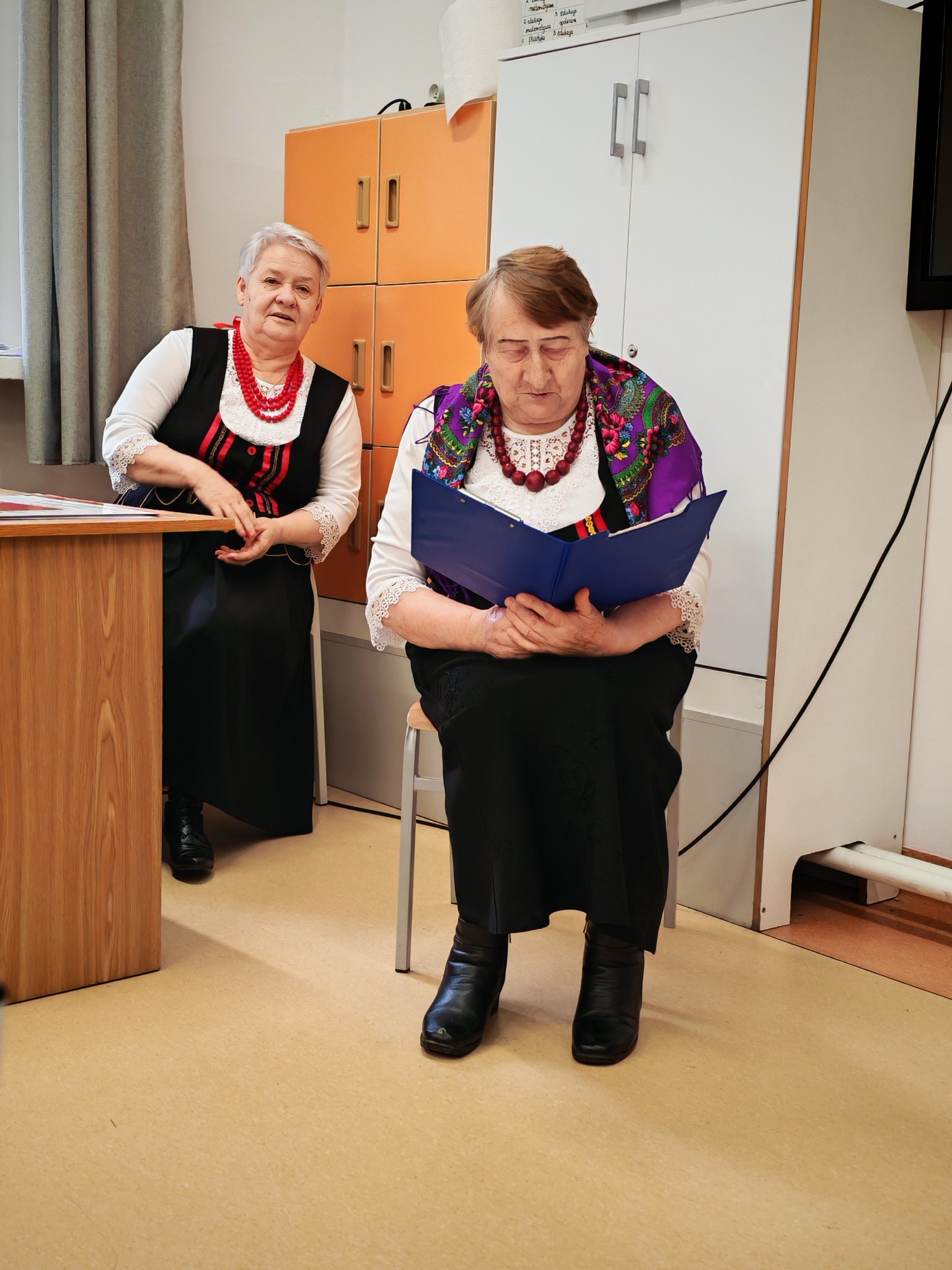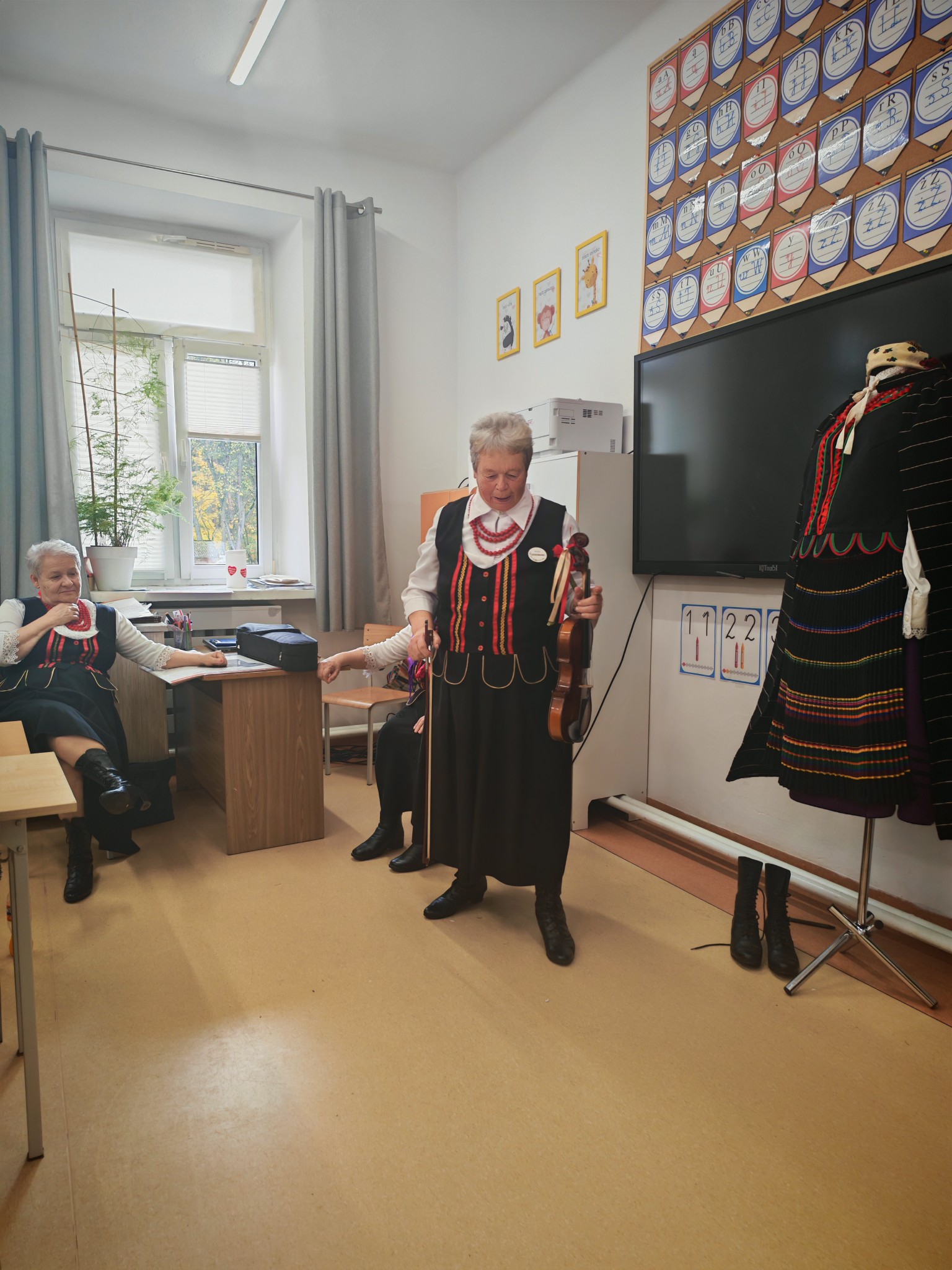Nie zabrakło też muzycznych wrażeń — jedna z Pań zagrała na skrzypcach „Poleczkę” i „Oberka”, wprowadzając wszystkich w prawdziwie ludowy klimat!