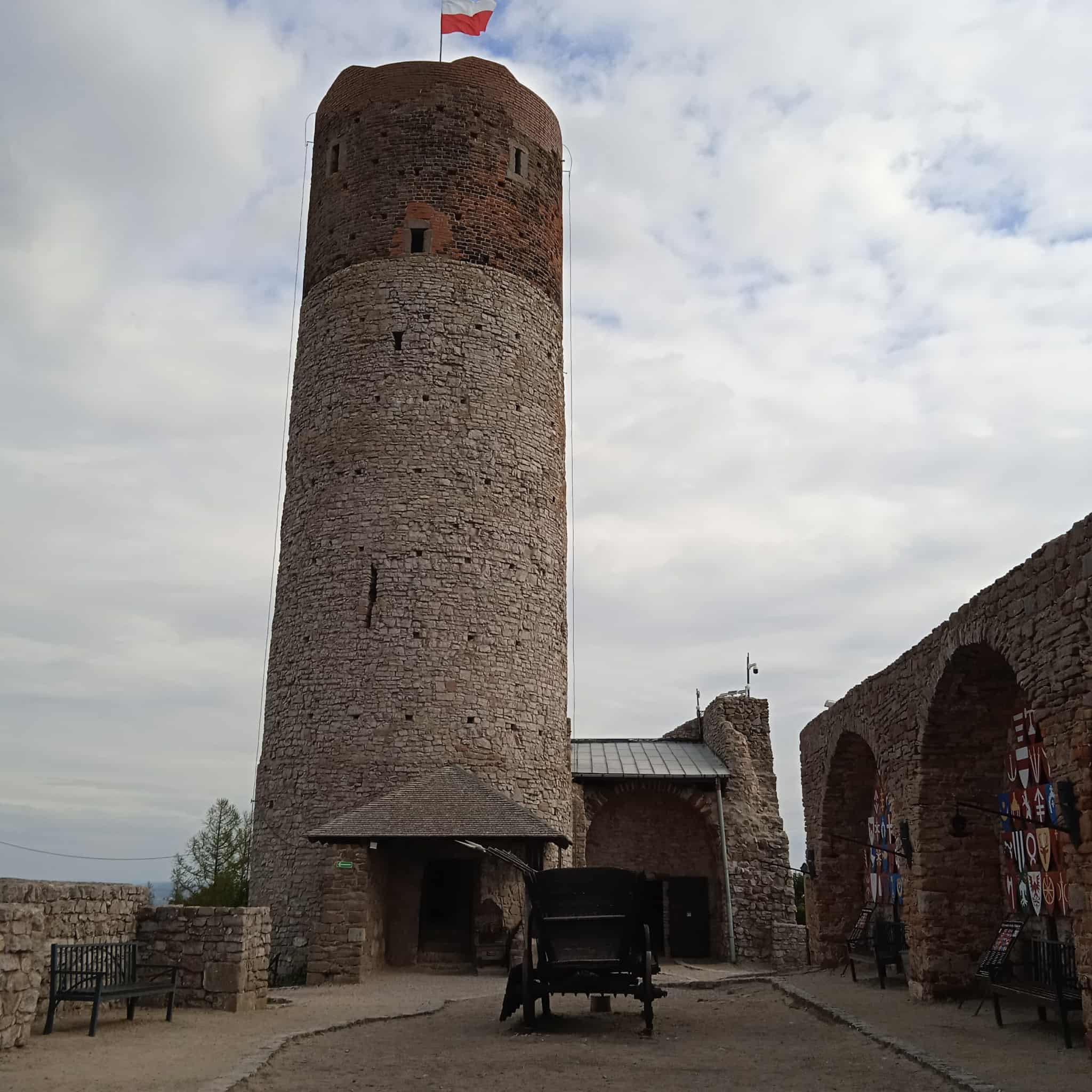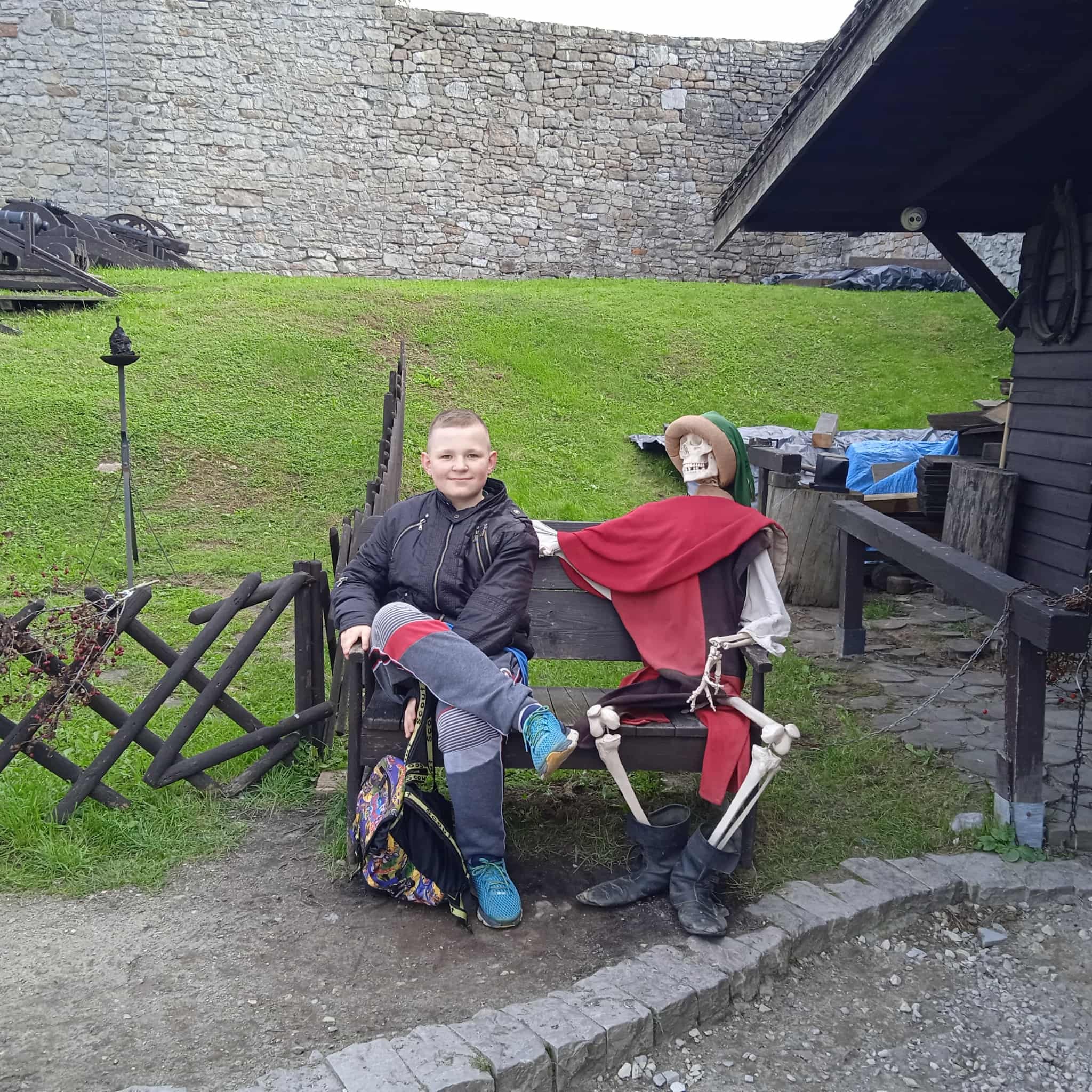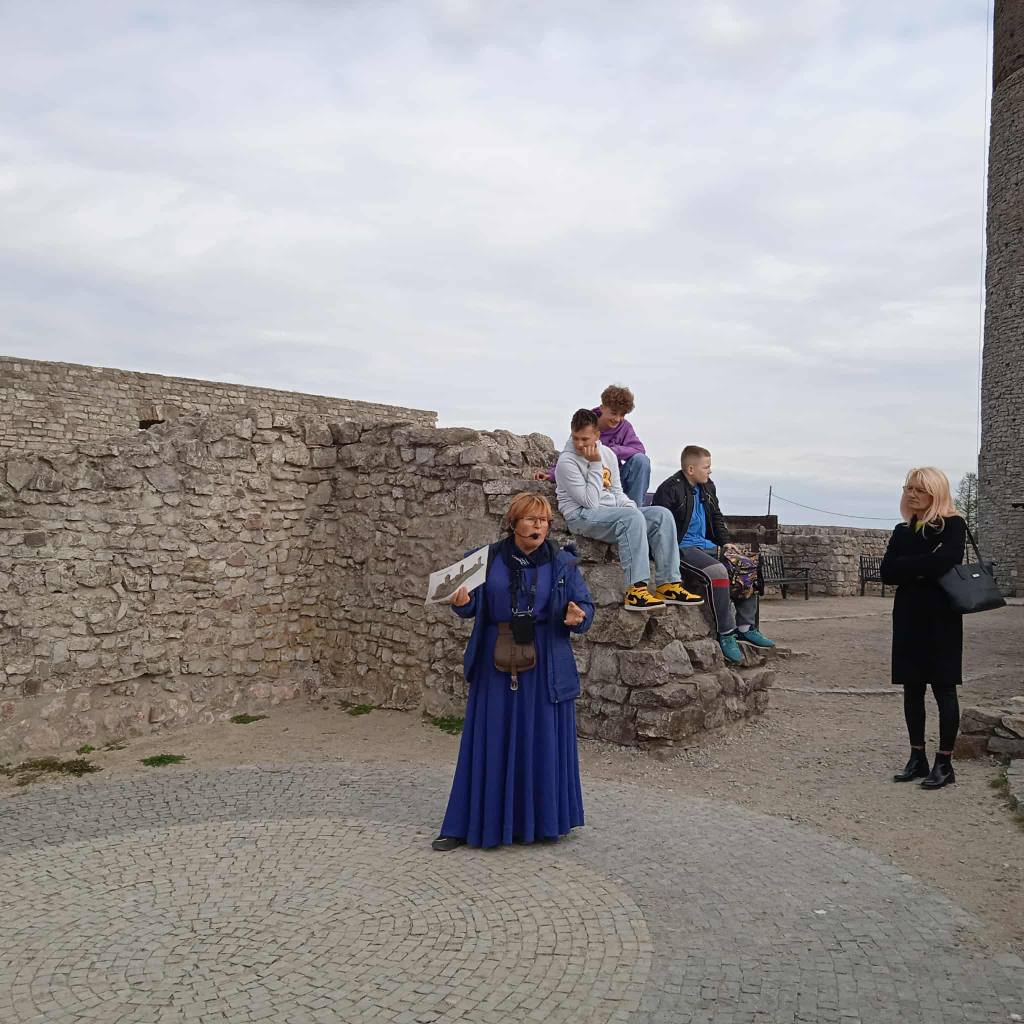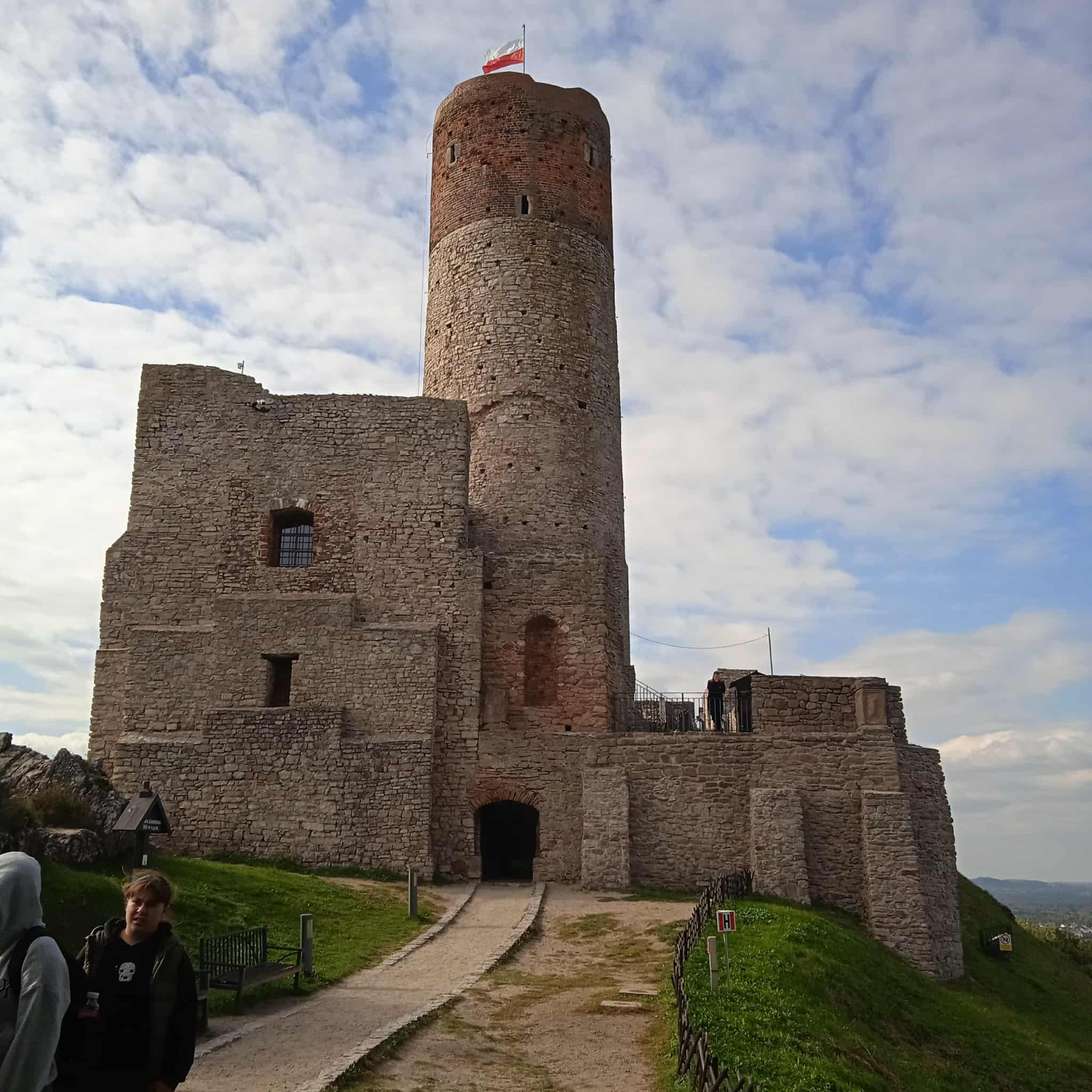 Kolejnym punktem wycieczki była wizyta na Zamku Królewskim w Chęcinach. Pani przewodnik opowiedziała wiele interesujących historii i ciekawostek związanych z tym średniowiecznym obiektem. Dużą atrakcją okazało się również wejście na jedną z zamkowych baszt – wyzwanie to chętnie podjęli najodważniejsi uczestnicy.