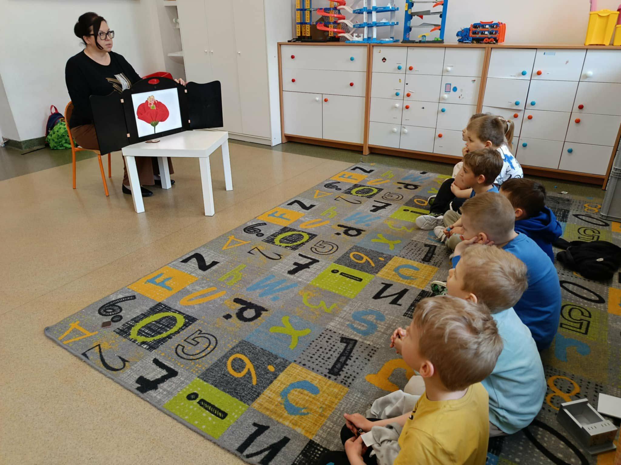 Podczas dzisiejszych zajęć z biblioterapii w oddziale zerowym dzieci miały okazję przenieść się do świata baśni. Pani Ewa Sumorek zaprezentowała utwór Hansa Christiana Andersena „Calineczka” w formie teatrzyku kamishibai, co wzbudziło duże zainteresowanie najmłodszych.